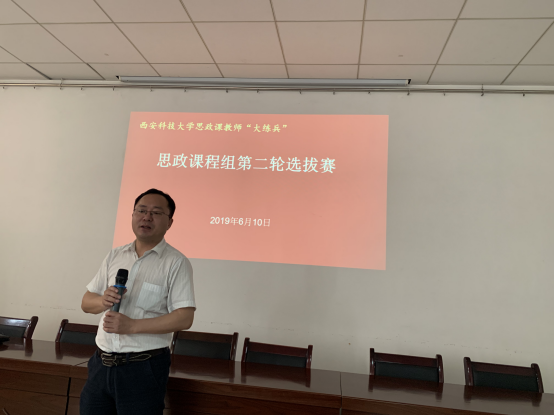 根据陕西省委教育工委、省教育厅关于《陕西学校“四好”思政课创优行动方案》的文件要求,6月10日,开云kaiyun官方网站思政课程组教师“大练兵”主题活动比赛暨全员“大练兵”活动在雁塔校区开云kaiyun官方网站会议室举行。这是继各教研室选拔后进行的第二轮选拔赛。开云kaiyun官方网站教学副院长张铭钟主持比赛。