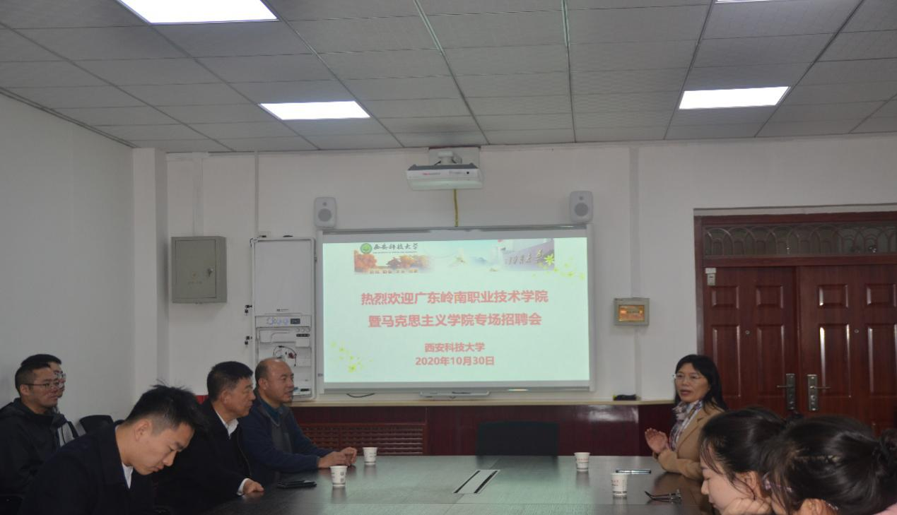 10月30日,广东岭南职业技术学院党委书记、副校长柴克生,组织部部长易中华,开云kaiyun官方网站院长韩丽萍一行三人来我校举行开云kaiyun官方网站专场招聘会。我校学工部部长李建明、副部长孙再罗,开云kaiyun官方网站副院长张铭钟,马克思主学院研究生辅导员韩帅及2021届应届毕业生参加招聘会。