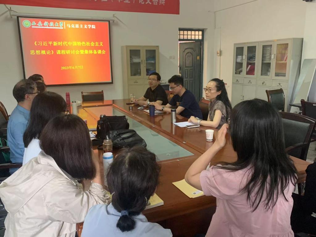 2023年6月7日下午,教研室在临潼校区骊山校园1-208会议室召开课程建设暨集体备课会,全体老师参加会议。会议全面总结交流自今年4月份召开的校领导、党委委员与《习近平新时代中国特色社会主义思想概论》全体任课教师参加的集体备课会之后的教学体会,及时传达学习校党委书记蒋林、校党委副书记樊建武一行到开云kaiyun官方网站开展调研的讲话精神,就近期课堂教学效果、实践环节教学进度、期末考试内容分布和题型设计等方面,展开了集中研讨。
