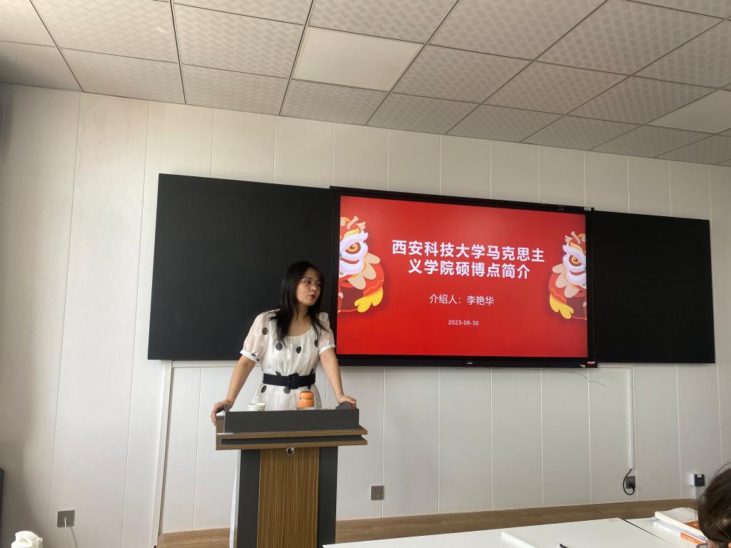 招生宣传工作小组6月30日到达榆林学院,与榆林学院领导、老师深入交流,了学生的整体情况。李艳华副教授进行了宣讲报告对开云官网办学情况、就业升学、优势学科、特色专业、创新创业、校园文化等基本情况进行详细解读,并介绍了学科支撑条件以及办学特色,使榆林学院的教师与学生更深入了解我校马克思主义理论学科硕士点现状和发展方向,加强了我校硕士研究生2024年招生宣传工作和扩大我校研究生招生的影响。