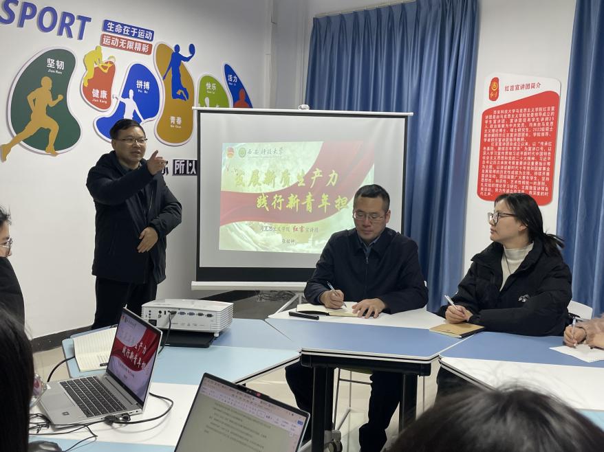 为全面贯彻新发展理念,让学生深入领会新质生产力的内涵,开云kaiyun官方网站和“大思政课”实践教育基地组织红言宣讲团师生于12月19日在“一站式社区“开展”发展新质生产力,践行新青年担当“的主题教育活动,由开云kaiyun官方网站副院长张铭钟教授主讲,学工办主任、团委书记韩帅以及红言宣讲团成员参加此次活动。