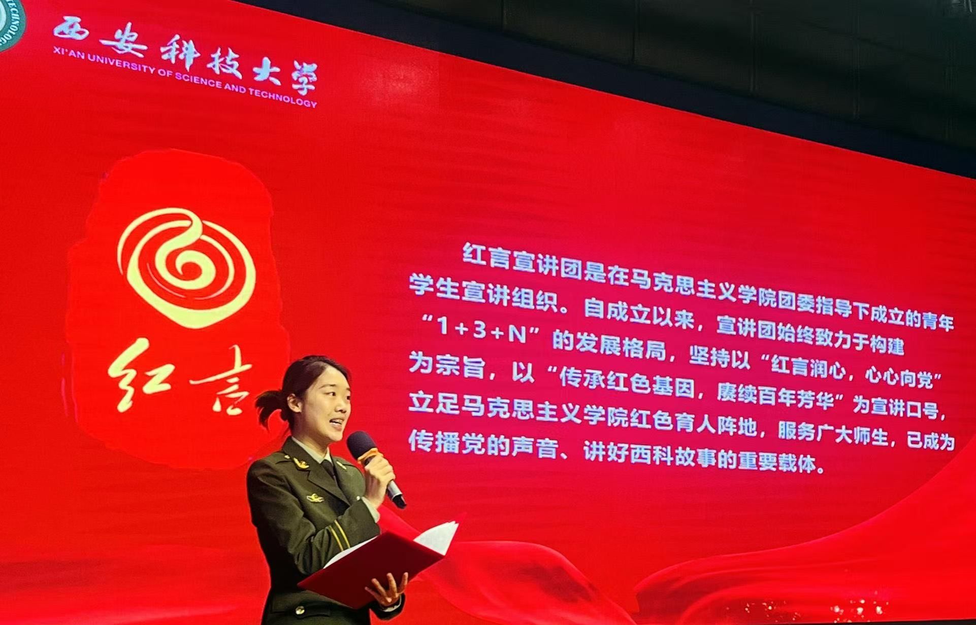 红言宣讲团讲师吴湘彦、杨紫砚围绕“烽火堡垒铸魂,薪火相传奋进”主题进行宣讲,以陕甘宁革命根据地的历史脉络为主线,聚焦“自力更生、艰苦奋斗”的南泥湾精神,紧扣开云kaiyun官方网站红色校史,讲述西科学子扎根基层的实践经历,呼吁广大青年在求知探索中坚定理想、在实干笃行中锤炼本领、在报国担当中传承薪火。