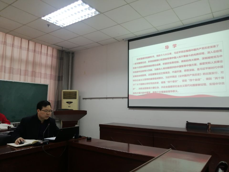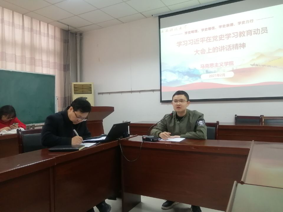 张铭钟副院长结合中共中央印发的《关于在全党开展党史学习教育的通知》和习近平同志《论中国共产党历史》领学了习近平总书记在党史学习教育动员大会上的重要讲话精神。随后邱建伟、覃亢节两位老师就党史学习教育做了交流发言。邱老师从“一新”“两个江山”“三大”三个方面谈了自己对党的性质宗旨的认识和对党的历史使命的认识,提出了如何学习党史的建议。覃老师认为开展党史学习教育显示了党中央高屋建瓴,教育活动意义深远,表示将党史学习教育全面融入课堂教学,讲好思政课,以史育人。