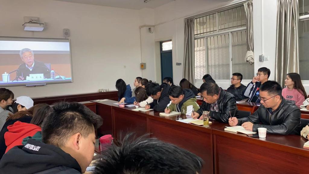 为深入学习宣传贯彻党的十九届五中全会精神,引导思政课教师增强“四个意识”、坚定“四个自信”、做到“两个维护”,准确把握全会精神实质,及时开展全会精神思政课专题教学,开云官网师生于2020 年 11 月 13 日9:30分别在临潼校区骊山校园一教205会议室及雁塔校区煤科楼1101会议室集体学习观看了“党的十九届五中全会精神”导学报告会。