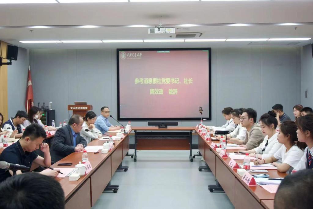 5月24日,由陕西省委教育工委主办的全省高校“学习宣传贯彻党的二十大精神”大学生宣讲队第一次集体备课会,在西安交通大学兴庆校区交大西迁博物馆成功召开,会议由西安交通大学医学部党委副书记、学生微宣讲团指导教师陈晨主持。