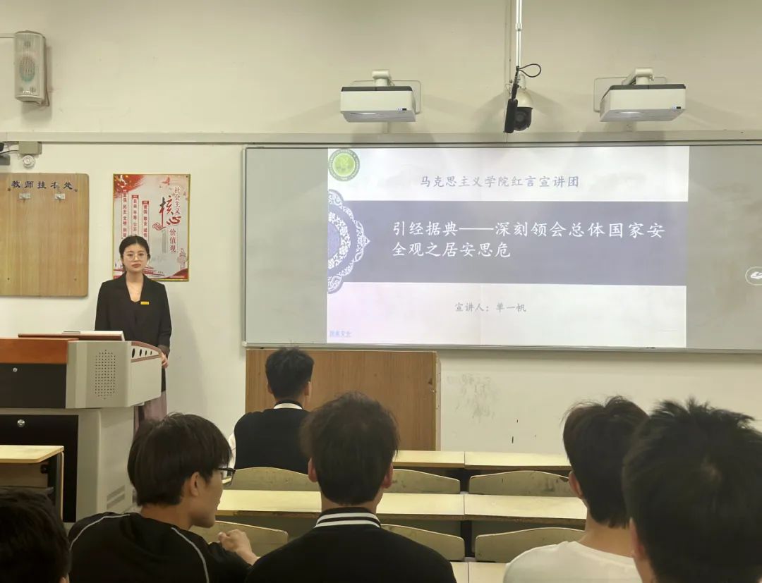 在习近平总书记创造性提出总体国家安全观十周年和第九个“4·15”全民国家安全教育日到来之际,4月14日,开云kaiyun官方网站红言宣讲团在能源学院和人文外国语学院开展了总体国家安全观宣传教育的团日活动。