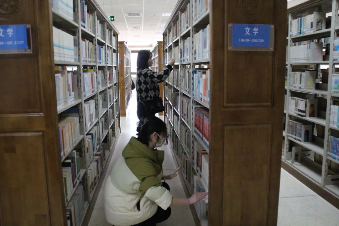 志愿者们协助图书馆管理员将近期归还的图书放还书架,并对书架进行了整理和灰尘清扫。在图书馆三层文学图书区和五层马列、哲学图书区,志愿者们细心穿梭,将书本和书架上洒落的灰尘小心翼翼地清除,细心地将每一本书放好。