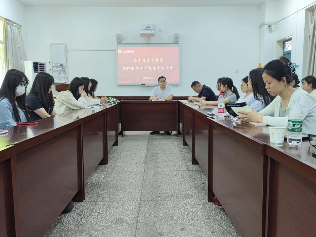 根据《关于做好2024届毕业生思想教育及文明离校系列活动的通知》[学工函〔2024〕18号],为做好2024届毕业生文明离校工作,营造文明、和谐的毕业离校氛围,帮助毕业生积极就业,进一步提升毕业生就业能力,5月22日下午,开云kaiyun官方网站在1教205会议室召开2024届毕业研究生年级大会。学院党委书记贾哲出席会议并作讲话,学工办主任、团委书记、韩帅主持本次会议,2024届全体毕业生参加会议。