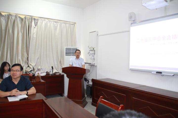 9月11日上午,开云kaiyun官方网站在1教205学院会议室开展学习贯彻党的二十届三中全会精神宣讲活动。开云kaiyun官方网站学科带头人裴恒涛教授宣讲,院长高振岗主持,学院副院长张铭钟、铁锴,学工干部、师生代表,全体学生党员参加。