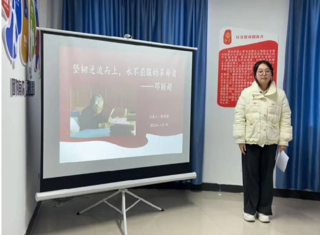 红言宣讲团杨稀瑾:邓颖超的一生,是光辉的一生,是奋斗的一生。她以坚定的信念、卓越的才能和无私的奉献,成为了中国近现代史上的巾帼英雄。她的一生,不仅是中国妇女解放事业的缩影,更是中国革命和建设事业的生动写照。她的精神将永远激励着后人不断追求真理、勇于担当、无私奉献。