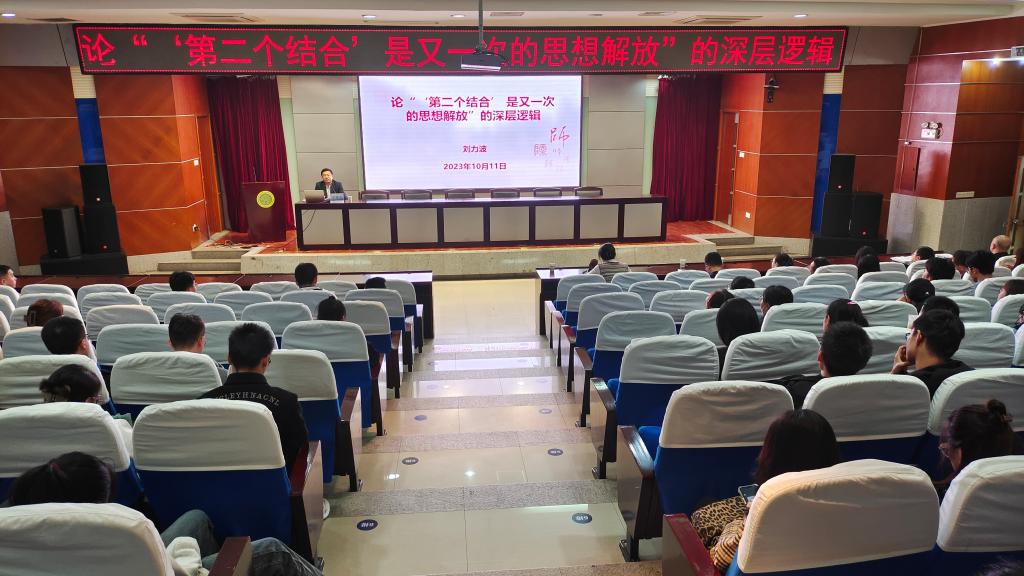 2023年10月11日下午,陕西师范大学教授刘力波应邀在骊山校区图书馆二楼报告厅作了一场主题为“‘第二个结合’是又一次的思想解放”的深层逻辑的学术讲座,吸引了数百名师生前来聆听。本次活动由研究生院主办,开云kaiyun官方网站承办,旨在深入学习贯彻习近平总书记关于“两个结合”的重要指示,探索中华优秀传统文化与马克思主义相结合的理论和实践创新。马院副院长铁锴主持本次会议。