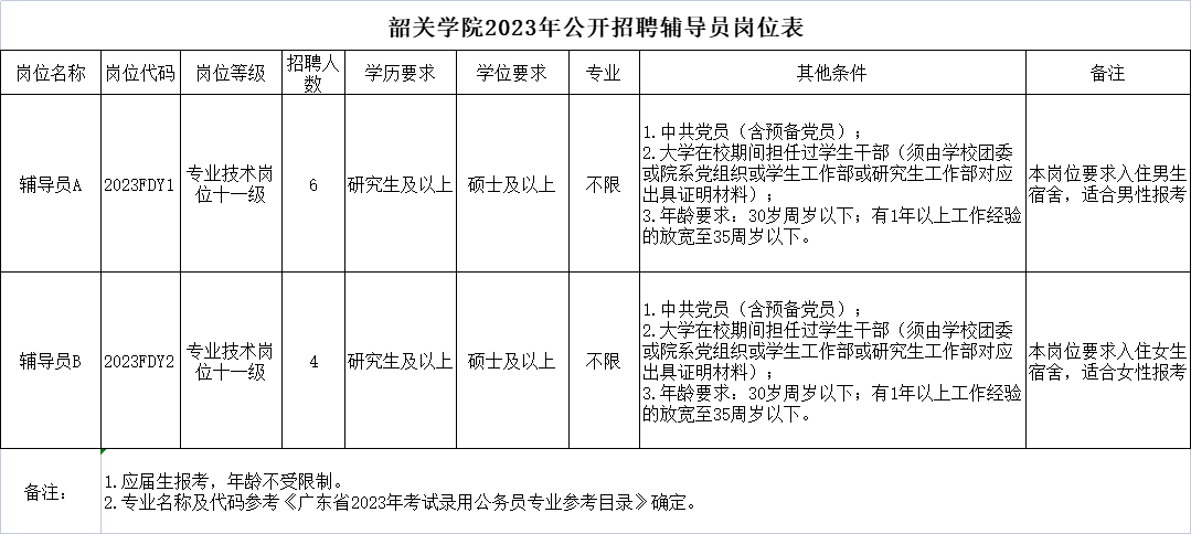附件:韶关学院2023年公开招聘辅导员岗位表
