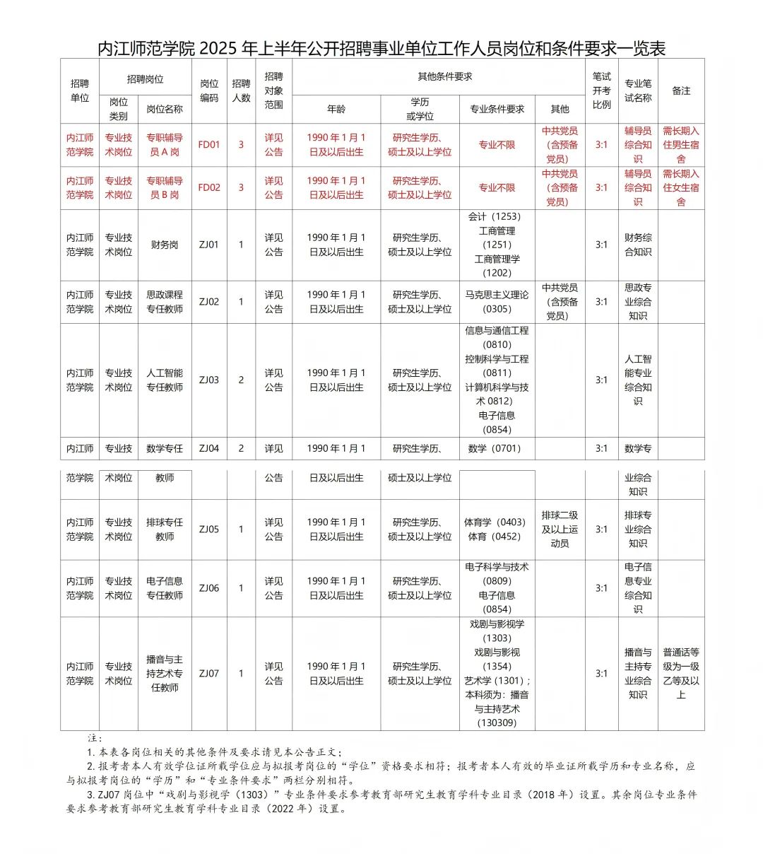 内江师范学院|2025年上半年|公开招聘事业单位工作人员公告