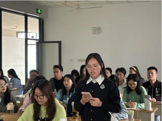 观影结束后,袁悦悦和程闽君两位同学分别分享了他们的观影感受,表达了作为新时代青年的爱国情怀。袁悦悦同学表示,爱国不仅是一种信仰,更是一种无私坚定的奉献,影片中展现的家国情怀令人深受感动,并呼吁新时代青年要像影片中的人物一样,始终保持对祖国的忠诚和热爱。程闽君同学则强调了新时代青年应当继承和发扬老一辈人的信仰和精神,坚定理想信念,艰苦奋斗,将爱国情怀付诸实际行动,为祖国的繁荣富强贡献力量。